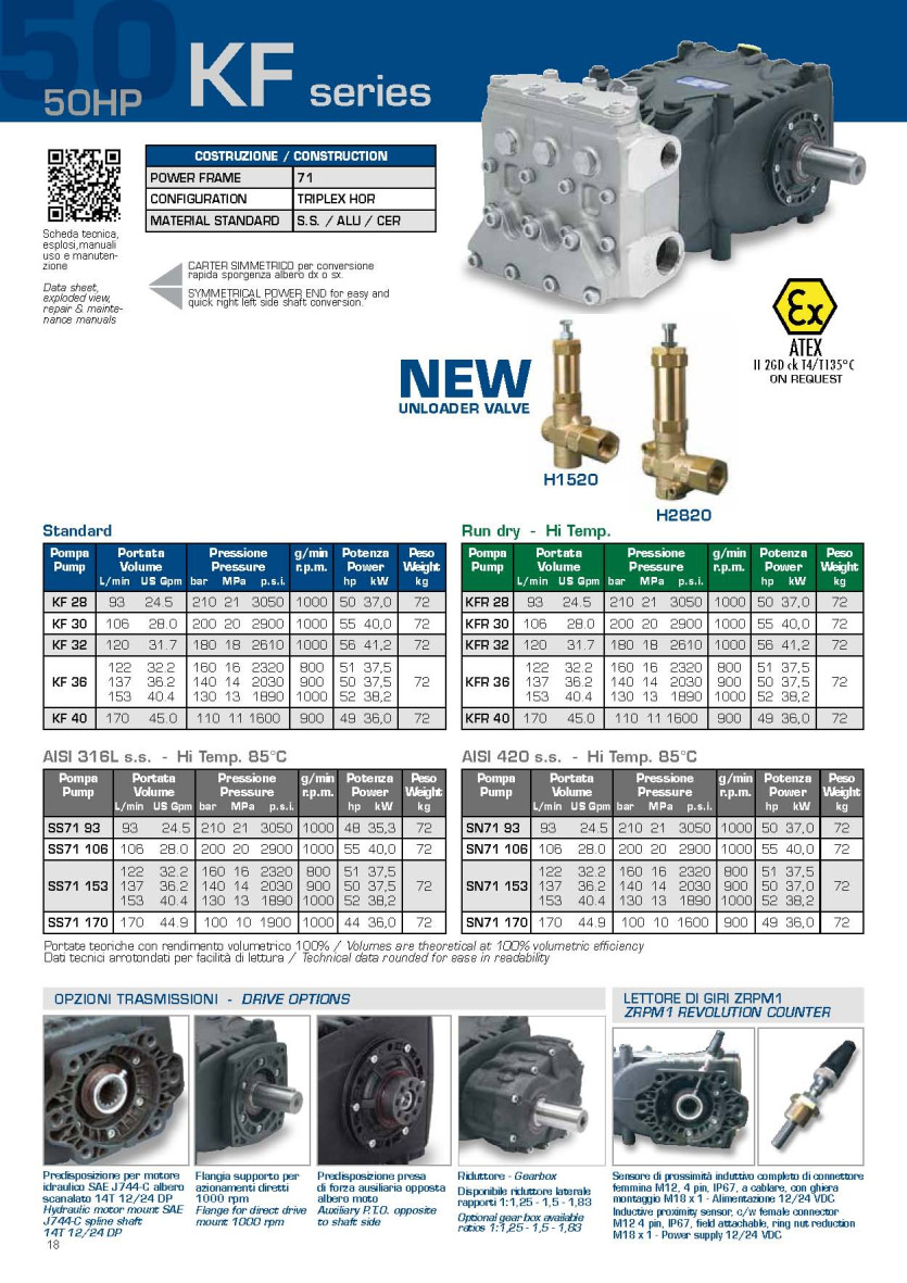 사용압력 110 ~ 210 bar 토 출 량 93 ~ 170 L/Min 필요마력 36 ~ 41.2 kW, 49 ~ 56 HP 제 조 사 PRATISSOLI / 이탈리아 상품목록 바로가기